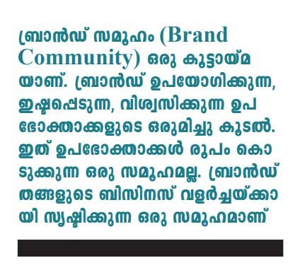 വില്പ്പനയില് ഉടലെടുക്കുന്ന ബന്ധത്തിന് കൂടുതല് അര്ത്ഥതലങ്ങള് ബ്രാന്ഡ് സമൂഹം നല്കും. ഉപഭോക്താവിന് തന്റെ പ്രാധാന്യം അനുഭവപ്പെടും. ബ്രാന്ഡുമായി അവര് വൈകാരികമായി ഇടപെട്ടു തുടങ്ങും. പുതിയ ഉപഭോക്താക്കളെ അവര് കൊണ്ടുവരും. ചിന്തിക്കൂ, നിങ്ങള്ക്കൊരു ബ്രാന്ഡുണ്ടോ എങ്കില് എന്തുകൊണ്ട് ഒരു ബ്രാന്ഡ് സമൂഹം (Brand Community) സൃഷ്ടിച്ചുകൂടാ?