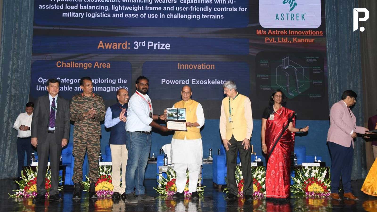ഡല്ഹിയില് നടന്ന ചടങ്ങില് പ്രതിരോധമന്ത്രി രാജ്നാഥ് സിംഗില് നിന്നും അസ്ട്രെക് ഇനോവേഷന്സ് സിടിഒ അലക്സ് എം സണ്ണി പുരസ്ക്കാരം ഏറ്റുവാങ്ങി
