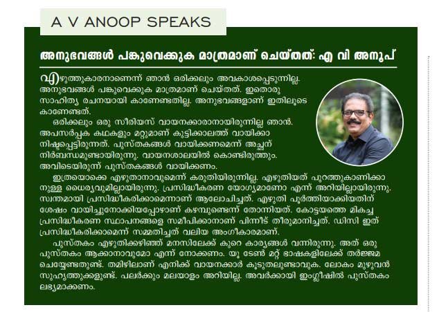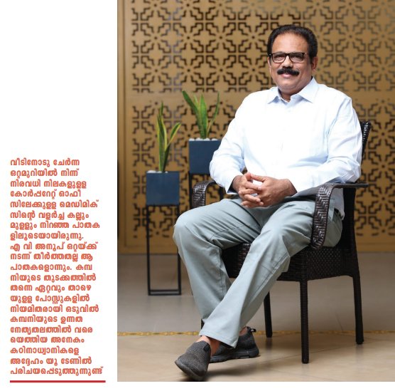 തിരികെ മദ്രാസിലെത്തിയ അദ്ദേഹം തന്റെ ബിസിനസിന്റെ ഭാഗമാകണമെന്നാവശ്യപ്പെട്ട് അനൂപിന് കത്തയച്ചു. ഉറപ്പായിരുന്ന സര്ക്കാര് ഉദ്യോഗവും വേണ്ടെന്നുവെച്ച് മനസില്ലാ മനസോടെയാണെങ്കിലും എ വി അനൂപ് അങ്ങനെ മദ്രാസിന് വണ്ടി കയറി. അന്നുതൊട്ടിന്നോളം അദ്ദേഹത്തിന്റെ ജീവിതത്തിന്റെ ഭാഗമാണ് പഴയ മദ്രാസ്, ഇന്നത്തെ ചൈന്നൈ. ഒരു വ്യവസായിയെന്ന നിലയില്, അഭിനേതാവെന്ന നിലയില് അദ്ദേഹത്തിന് ആവോളം സ്നേഹം നല്കിയ പട്ടണം.