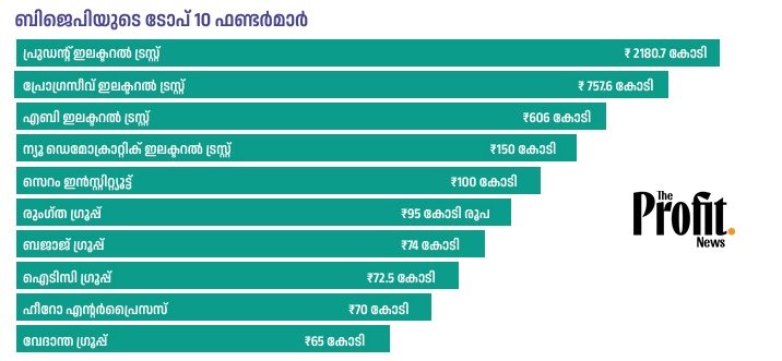 കേന്ദ്രത്തില് തുടര്ച്ചയായി മൂന്നാം ടേമിലും അധികാരത്തിലുള്ള ബിജെപി കോര്പ്പറേറ്റ് മേഖലയുടെ പ്രിയപ്പെട്ട പാര്ട്ടിയായി മാറിയിട്ടുണ്ട്. ബനിയമാരും മാര്വാഡികളും തഴച്ചുവളര്ന്ന മണ്ണില് നിന്നു വന്ന വ്യക്തികളാണ് ബിജെപിയുടെ അധികാര സ്ഥാനങ്ങളിലുള്ളത്. അവരെ ആരും ബിസിനസ് പഠിപ്പിക്കേണ്ടതില്ല. 2024-25 സാമ്പത്തിക വര്ഷത്തില് 6,088 കോടി രൂപയാണ് സംഭാവനയായി ബിജെപിക്ക് ലഭിച്ചത്. മുന് വര്ഷത്തെ 3,967 കോടി രൂപയില് നിന്ന് 50% ല് ഏറെ തുക ബിജെപിക്ക് ഈ വര്ഷം ലഭിച്ചു. ഇതില് 3100 കോടി രൂപയോളം ഇലക്ടറല് ട്രസ്റ്റുകള് മുഖേനയാണ്. എല്ആന്ഡ്ടി, ഭാരതി എയര്ടെല്, മാരുതി സുസുക്കി, ഡിഎല്എഫ് തുടങ്ങിയ വമ്പന് കമ്പനികള് അംഗമായ പ്രുഡന്റ് ഇലക്ടറല് ട്രസ്റ്റാണ് ബിജെപിക്ക് ഏറ്റവുമധികം സംഭാവന നല്കിയത്, 2180.7 കോടി രൂപ.