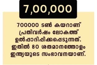 320.8 ദശലക്ഷം ഡോളറിന്റേതാണ് ആഗോള കയര് വിപണി. 2028 ആകുമ്പോഴേക്കും 8.7 ശതമാനം വളര്ച്ച ഈ വിപണിയിലുണ്ടാകുമെന്നാണ് വിലയിരുത്തല്. 700000 ടണ് കയറാണ് പ്രതിവര്ഷം ലോകത്ത് ഉല്പ്പാദിപ്പിക്കപ്പെടുന്നത്. ഇതില് 80 ശതമാനത്തോളം ഇന്ത്യയുടെ സംഭാവനയാണ്. കേരളം, തമിഴ്നാട്, ആന്ധ്ര പ്രദേശ്, കര്ണാടക തുടങ്ങിയ സംസ്ഥാനങ്ങളിലും കയറുല്പ്പാദനം സജീവമാണ്. രാജ്യത്തെ 90 ശതമാനം കയര് ഉല്പ്പാദനവും നടക്കുന്നത് ഈ സംസ്ഥാനങ്ങളിലാണെന്ന് പറയാം.